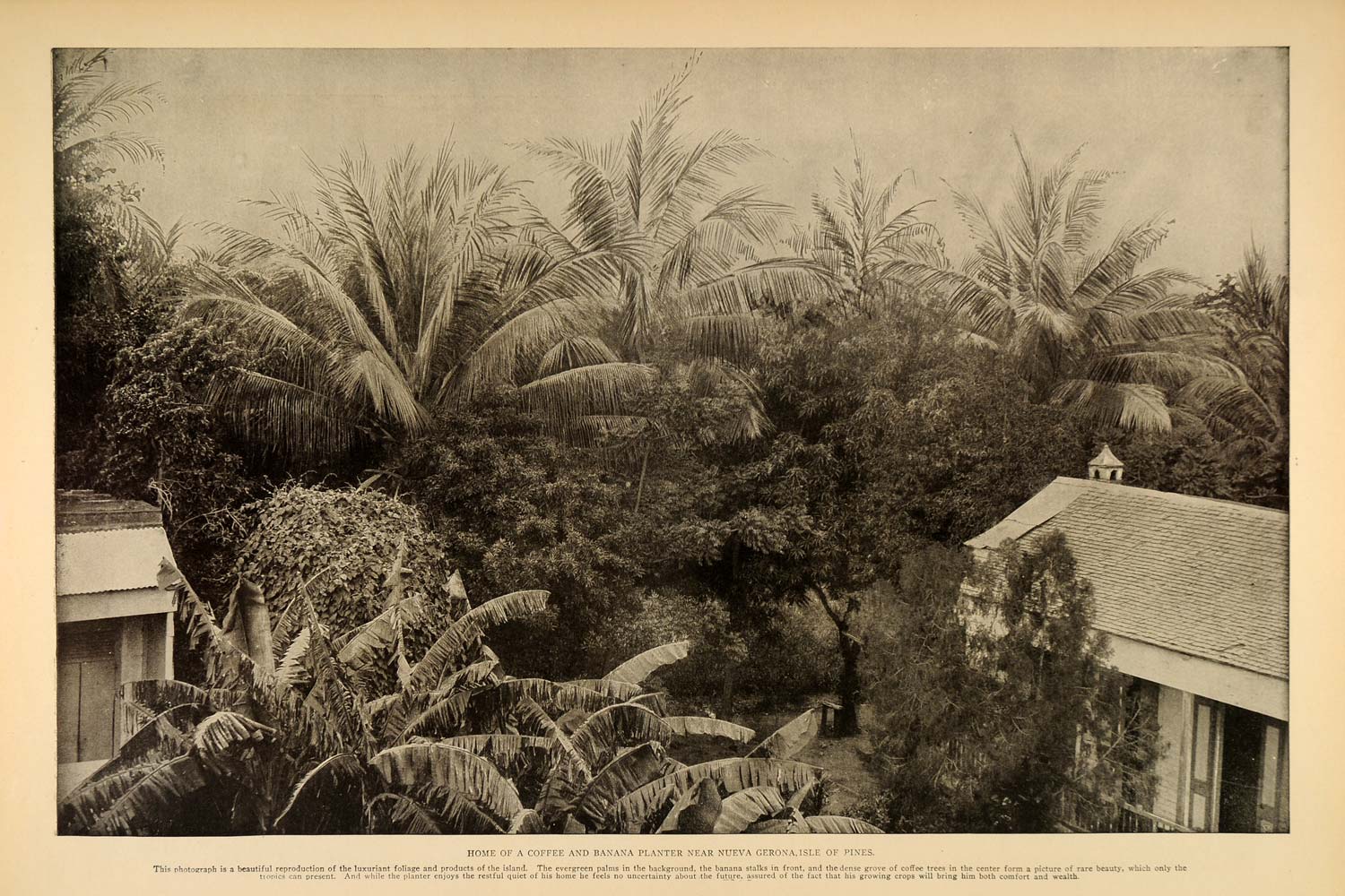 This is an original 1899 halftone print of the home of a coffee and banana planter near Nueva Gerona on the Isla de Pinos (or as it is known now — Isla de la Juventud) in Cuba. (Please note that there is printing on the reverse.)