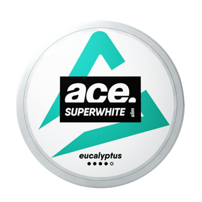 ACE Eucalyptus Snus is een gloednieuwe all white merk op de markt. Deze ACE Eucalyptus Snus hebben een heerlijke ondertoon waar je smaakpapillen van versteld zullen staan. De zoete ondertoon van Eucalyptus zorgt voor een zachte muntsmaak. In een bakje zitten 24 ACE nicotinezakjes met een nicotinegehalte van 16 mg/g (10.4 mg/pouch) wat dit één van de sterkste soorten maakt in ons assortiment. Een échte aanrader voor de zware rokers onder ons. De super zachte en slanke zakjes maakt ACE Eucalyptus Snus een echte topper onder de nicotinezakjes.