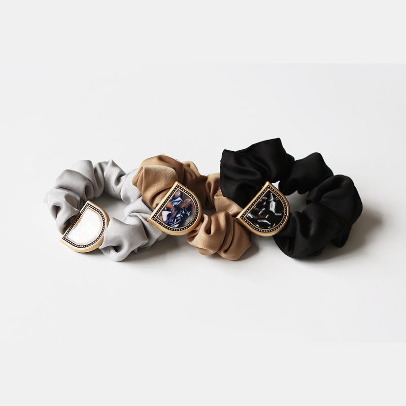 This is a stylish 3-pack hair scrunchies with capital letter D ornament, including 3 gorgeous colors to go with various hair styles and outfit.