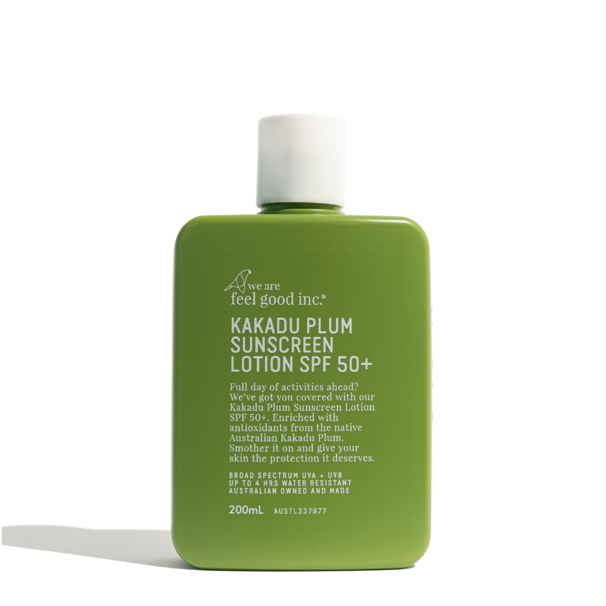 Full day of activities ahead? We’ve got you covered!Our Signature Sunscreen formula with added Native Australian Kakadu Plum. Broad spectrum, non-greasy and up to 4 hours water resistant to give you maximum coverage. With added Vitamin E and Aloe Vera. Smother on Kakadu Plum SPF 50+ and give your skin the protection it deserves.Does not contain PABA, parabens, oxybenzone or octinoxate.Australian owned and made.
