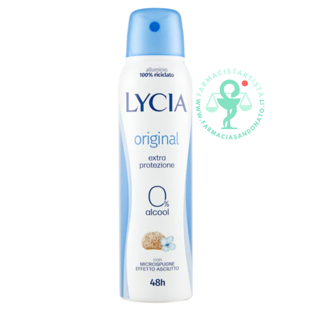 Deo spray Lycia original – 48 ore di extra protezione – Formula con microspugne effetto asciutto che regola la sudorazione e elimina i cattivi odori – Grazie all’antibatterico selettivo contrasta i batteri responsabili dei cattivi odori, rispettando la microflora naturale Deodorante 0% alcool. Dermatologicamente testato Preparazione e Uso: Agitare bene prima dell’uso Avvertenze di sicurezza: PERICOLO. Aerosol estremamente infiammabile. Contenitore pressurizzato: può scoppiare se riscaldato. Tenere lontano da fonti di calore, superfici calde, scintille, fiamme libere o altre fonti di accensione. Non fumare. Non vaporizzare su una fiamma libera o altra fonte di accensione. Non perforare né bruciare, neppure dopo l’uso. Proteggere dai raggi solari. Non esporre a temperature superiori a 50 °C/122 °F. Tenere fuori dalla portata dei bambini.
