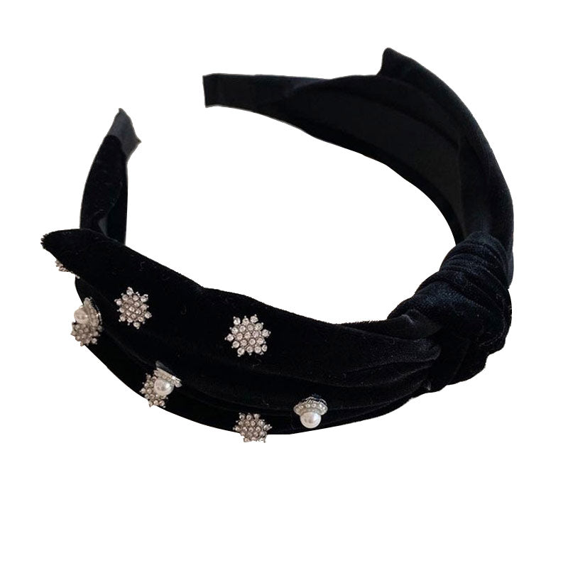 Embellished with lustrous faux pearls and glittery diamantes, this luxury headband is a perfect way to top off your look. Crafted of fine velvet, this delicate headpiece features a top bow. Adorn your head with it for a retro look. Our designer hair accessories collection will bring out more cute headbands for women. Give yourself a chic look with our trendy headwear.